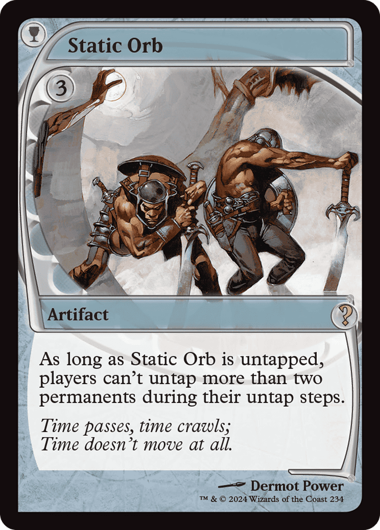As long as this artifact is untapped, players can’t untap more than two permanents during their untap steps.