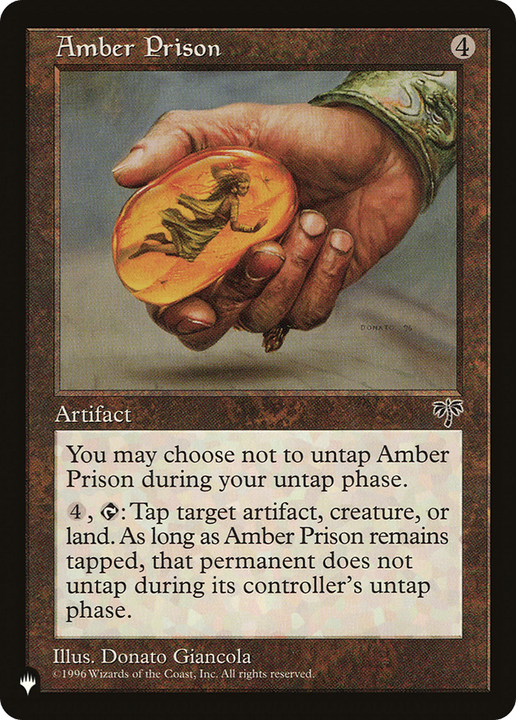 {4}, {T}: Tap target artifact, creature, or land. That permanent doesn’t untap during its controller’s untap step for as long as this artifact remains tapped.