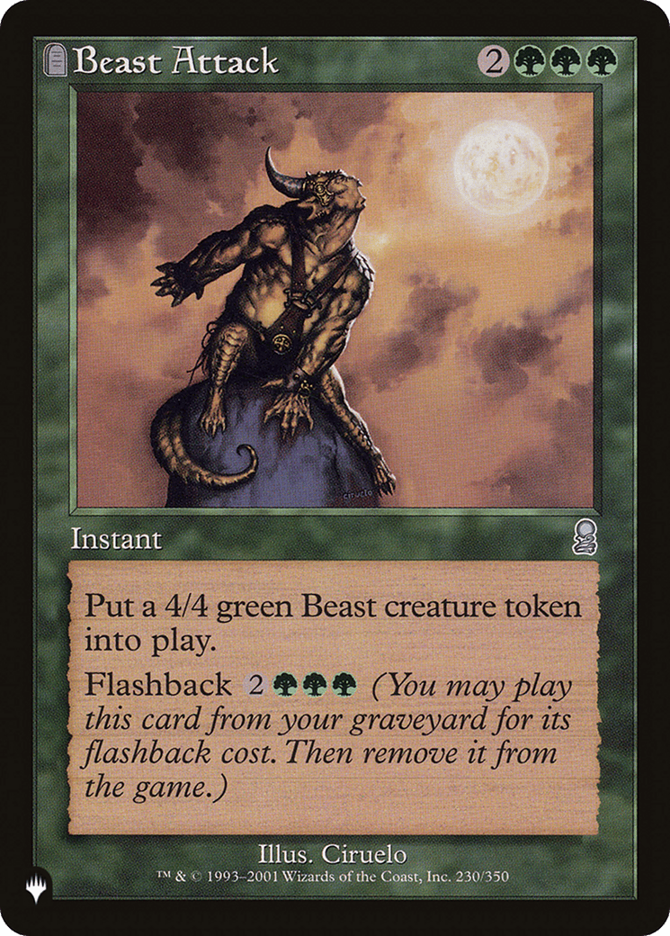 Create a 4/4 green Beast creature token. Flashback {2}{G}{G}{G} (You may cast this card from your graveyard for its flashback cost. Then exile it.)