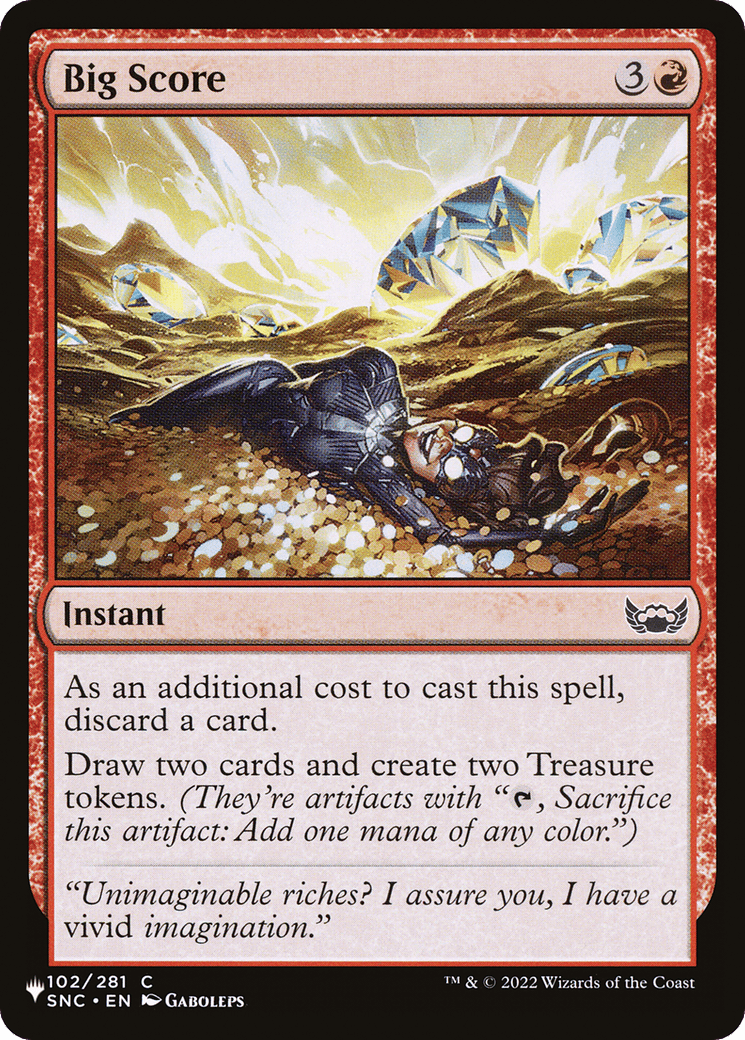 Draw two cards and create two Treasure tokens. (They’re artifacts with “{T}, Sacrifice this token: Add one mana of any color.”)