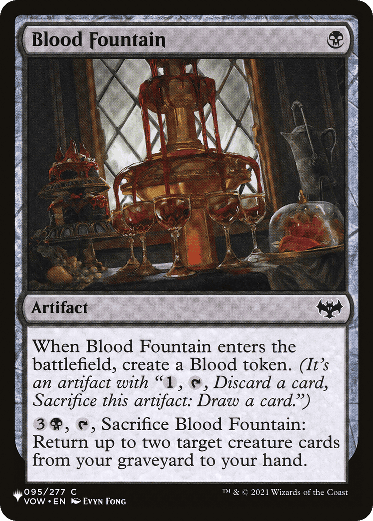 When this artifact enters, create a Blood token. (It’s an artifact with “{1}, {T}, Discard a card, Sacrifice this token: Draw a card.”)