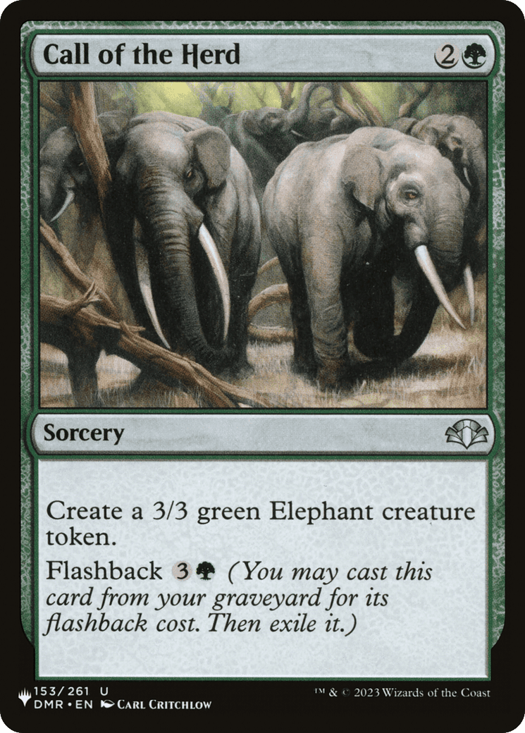 Create a 3/3 green Elephant creature token. Flashback {3}{G} (You may cast this card from your graveyard for its flashback cost. Then exile it.)