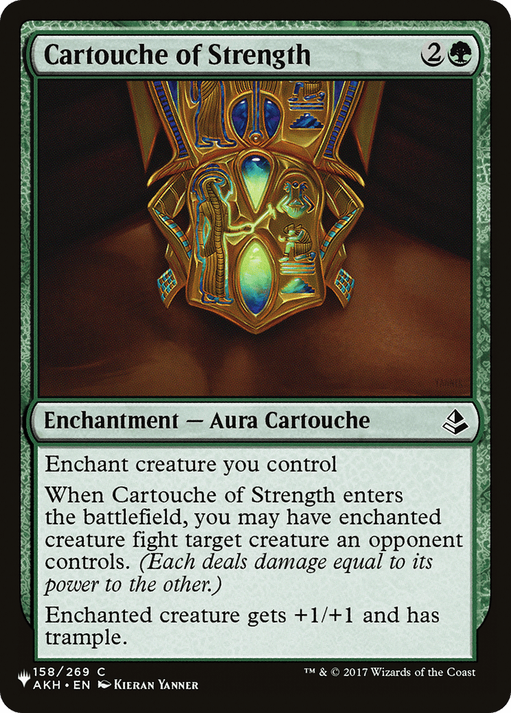 When this Aura enters, you may have enchanted creature fight target creature an opponent controls. (Each deals damage equal to its power to the other.)