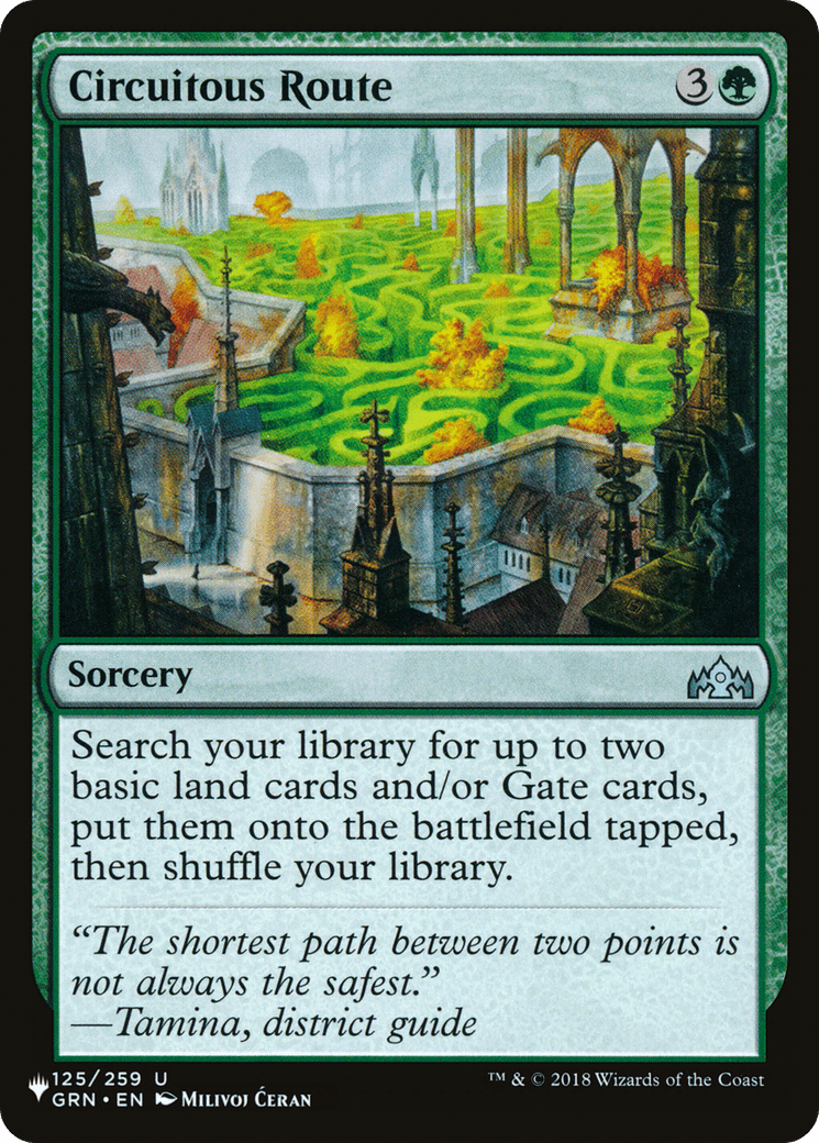 Search your library for up to two basic land cards and/or Gate cards, put them onto the battlefield tapped, then shuffle.