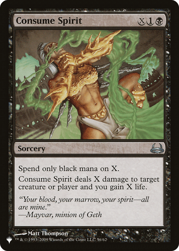 Consume Spirit deals X damage to any target and you gain X life.