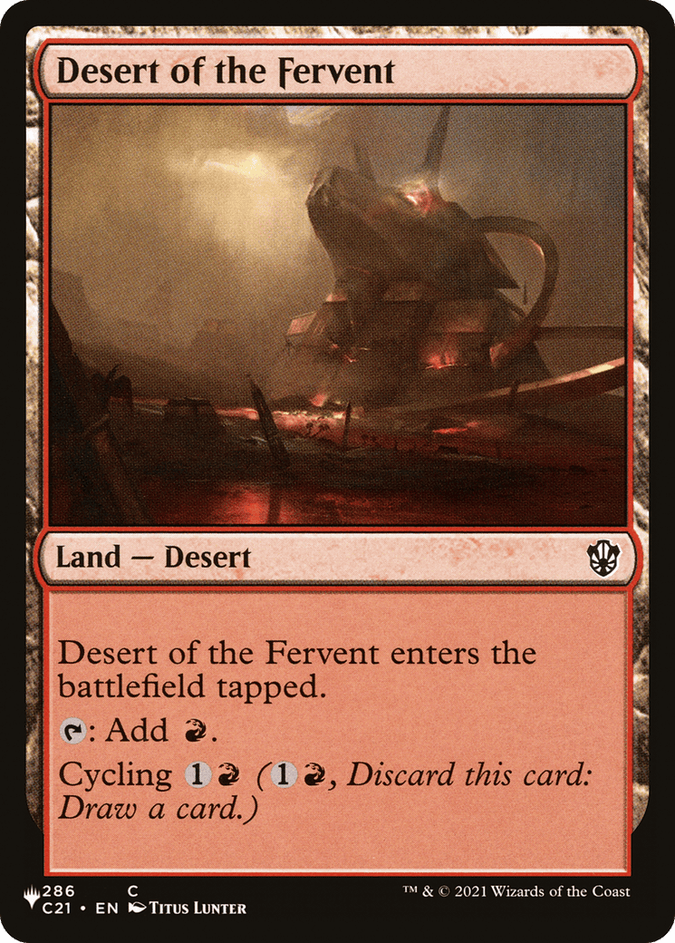 This land enters tapped. {T}: Add {R}. Cycling {1}{R} ({1}{R}, Discard this card: Draw a card.)