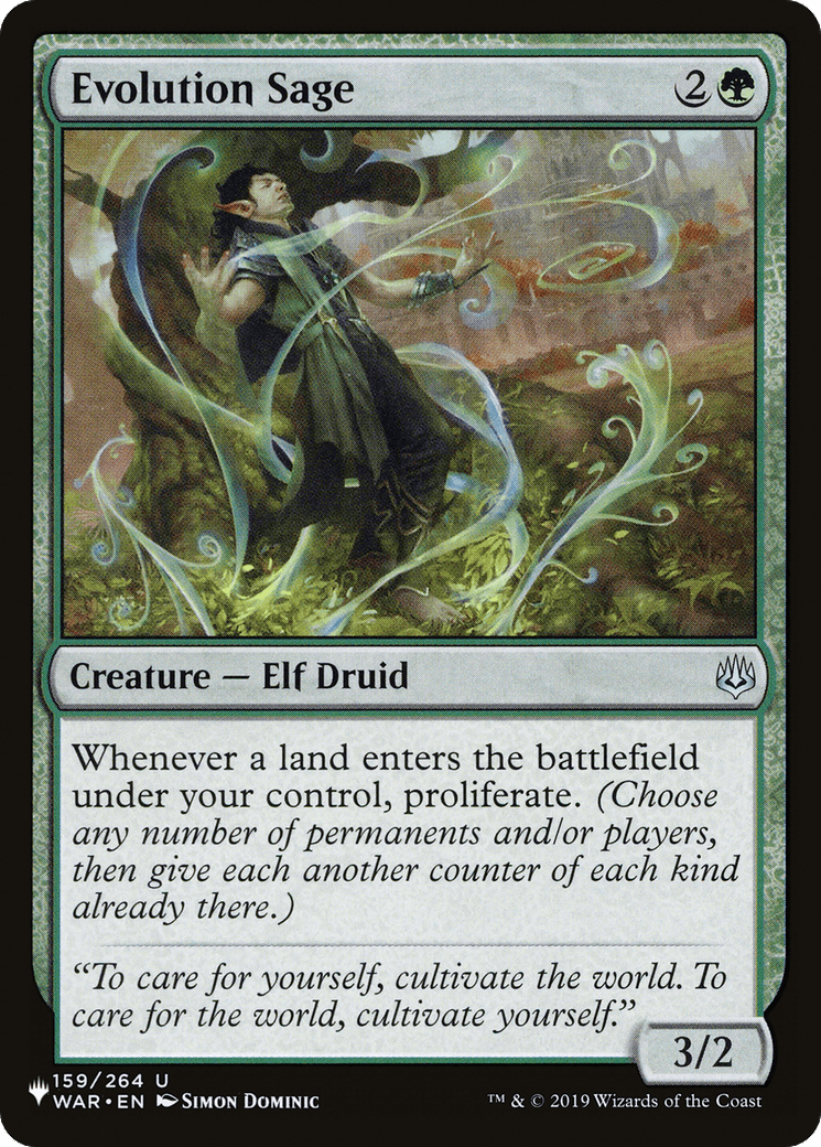 Landfall – Whenever a land you control enters, proliferate. (Choose any number of permanents and/or players, then give each another counter of each kind already there.)