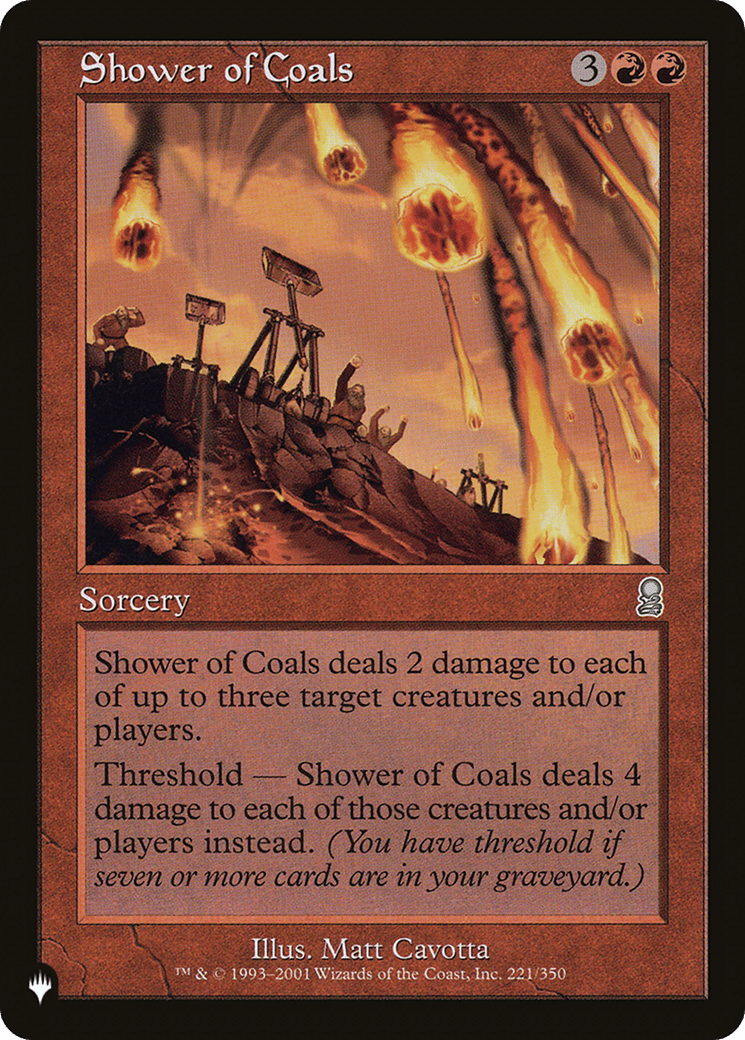Threshold – Shower of Coals deals 4 damage to each of those permanents and/or players instead if seven or more cards are in your graveyard.