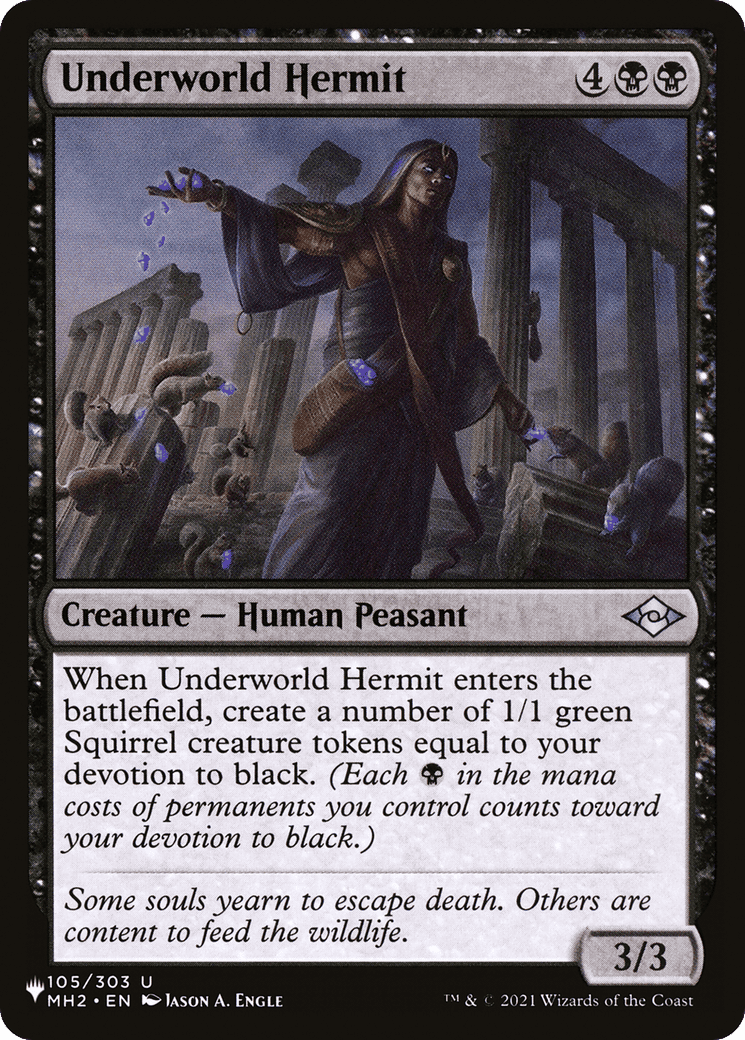 When this creature enters, create a number of 1/1 green Squirrel creature tokens equal to your devotion to black. (Each {B} in the mana costs of permanents you control counts toward your devotion to black.)