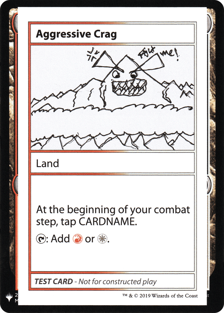 At the beginning of your combat step, tap Aggressive Crag. {T}: Add {R} or {W}.