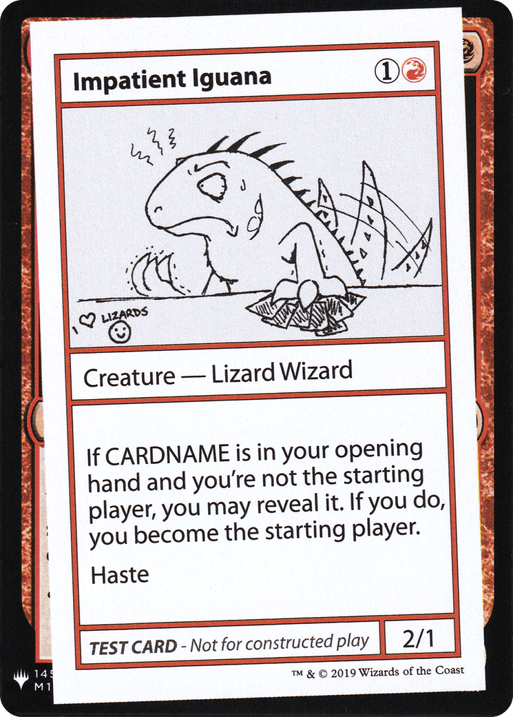 If Impatient Iguana is in your opening hand and you’re not the starting player, you may reveal it. If you do, you become the starting player.