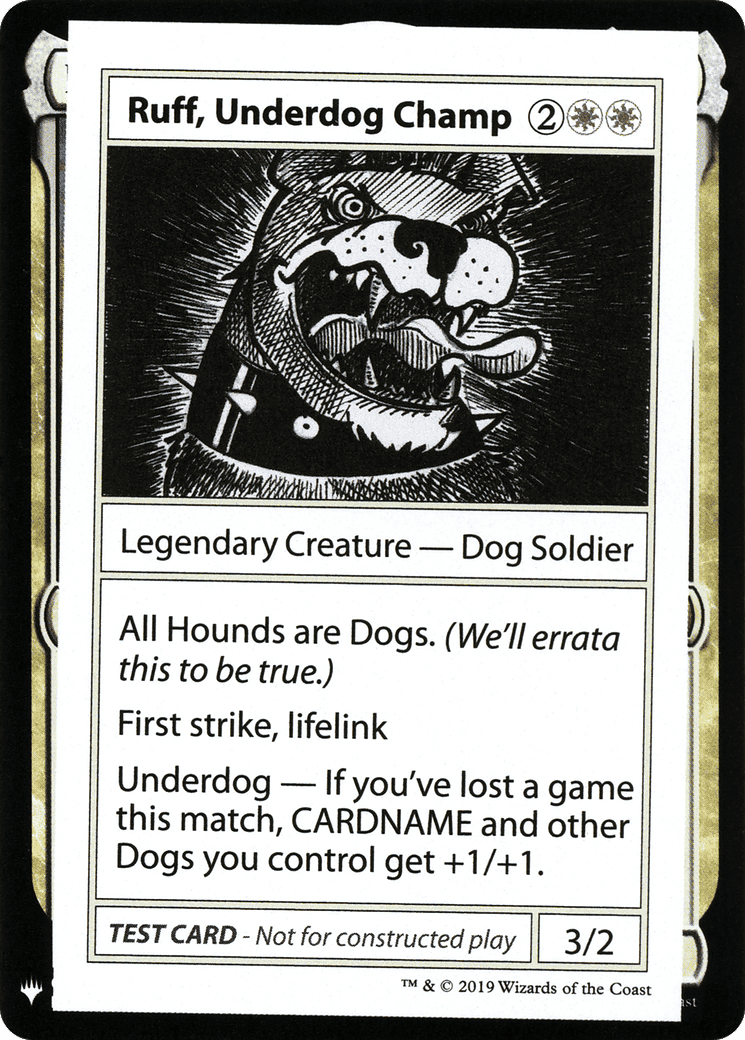 Underdog – If you’ve lost a game this match, Ruff, Underdog Champ and other Dogs you control get +1/+1.