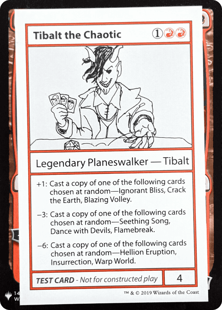 +1: Cast a copy of one of the following cards chosen at random-Ignorant Bliss, Crack the Earth, Blazing Volley.
