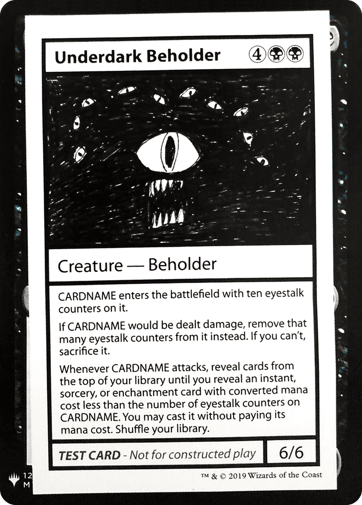 Underdark Beholder enters the battlefield with ten eyestalk counters on it.