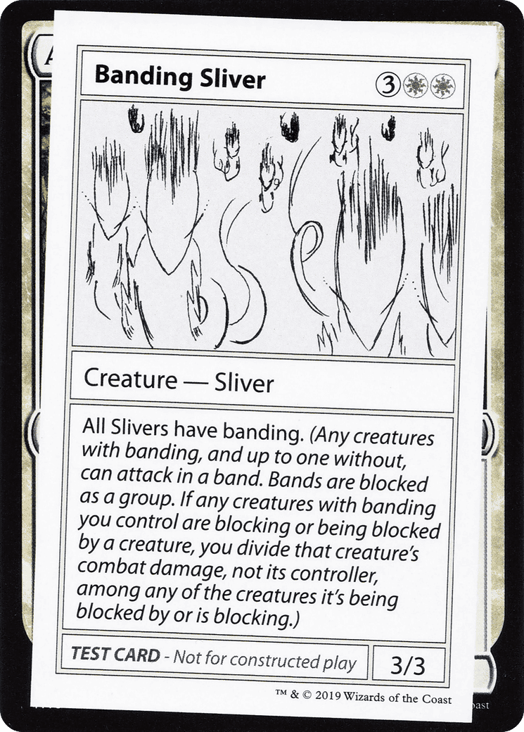 All Slivers have banding. (Any creatures with banding, and up to one without, can attack in a band. Bands are blocked as a group. If any creatures with banding you control are blocking or being blocked by a creature, you divide that creature’s combat dama