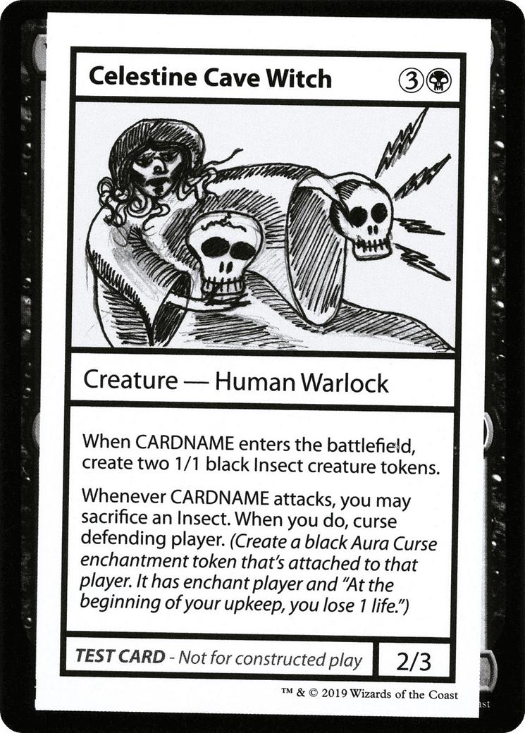 When Celestine Cave Witch enters, create two 1/1 black Insect creature tokens.