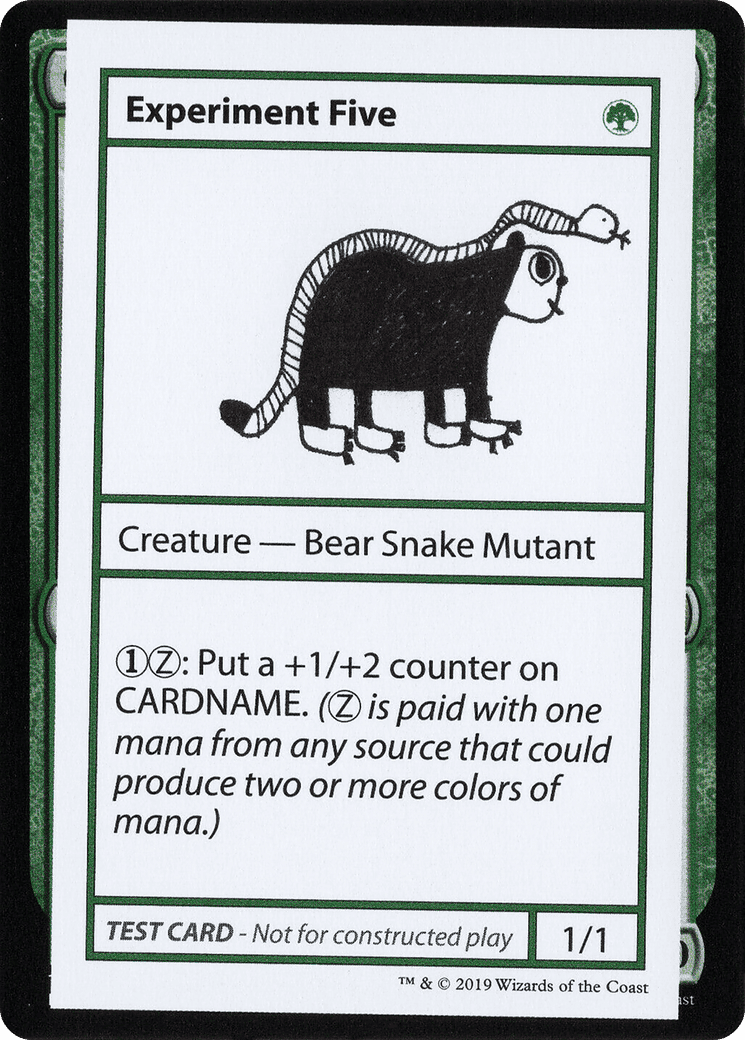 {1}{Z}: Put a +1/+2 counter on Experiment Five. ({Z} is paid with one mana from any source that could produce two or more colors of mana.)
