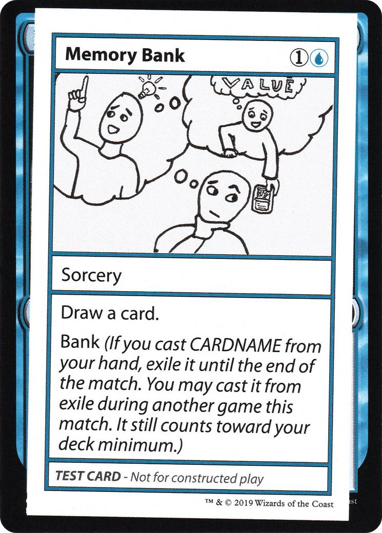 Bank (If you cast Memory Bank from your hand, exile it until the end of the match. You may cast it from exile during another game this match. It still counts toward your deck minimum.)