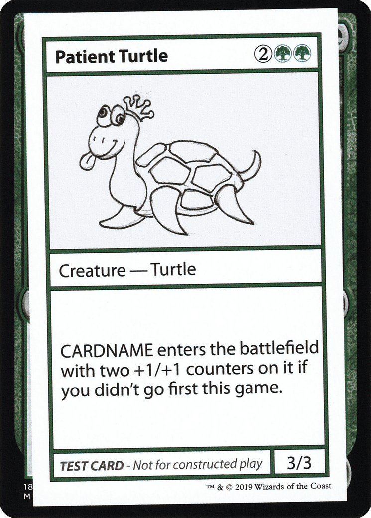 Patient Turtle enters with two +1/+1 counters on it if you didn’t go first this game.