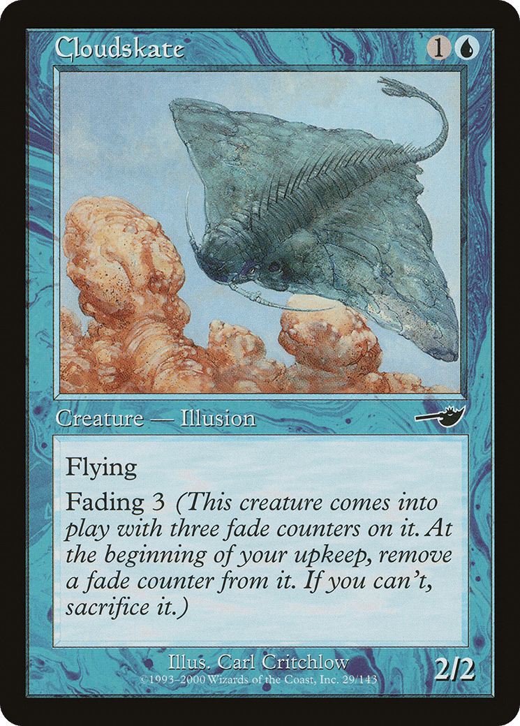 Flying Fading 3 (This creature enters with three fade counters on it. At the beginning of your upkeep, remove a fade counter from it. If you can’t, sacrifice it.)
