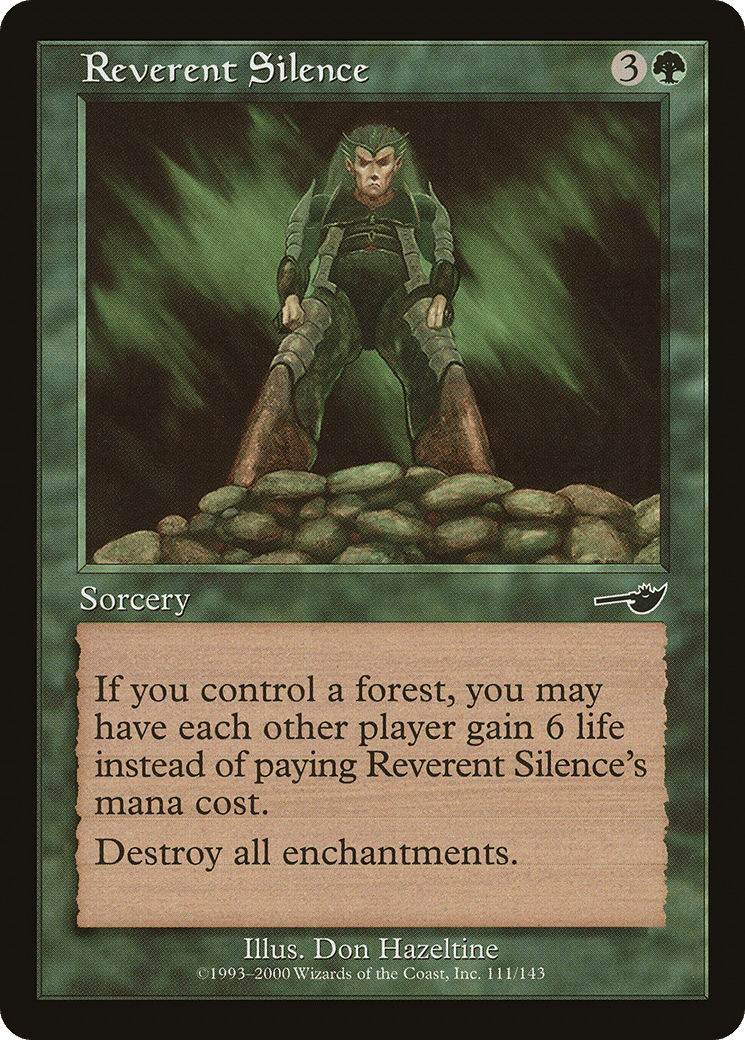 If you control a Forest, rather than pay this spell’s mana cost, you may have each other player gain 6 life. Destroy all enchantments.