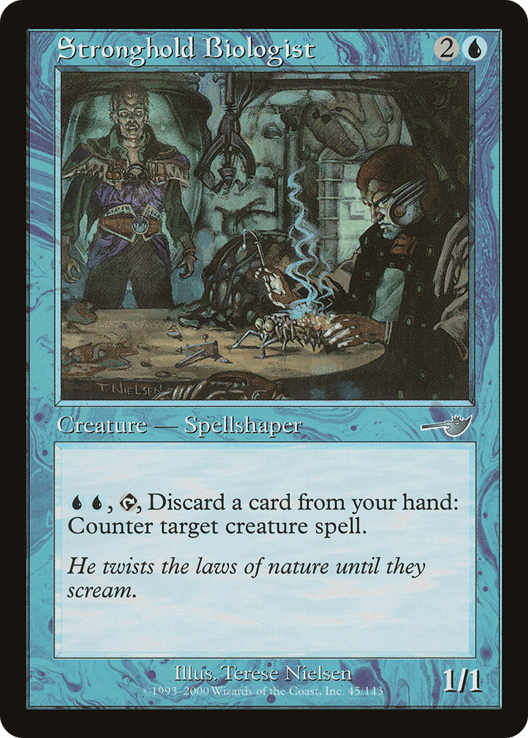 {U}{U}, {T}, Discard a card: Counter target creature spell.