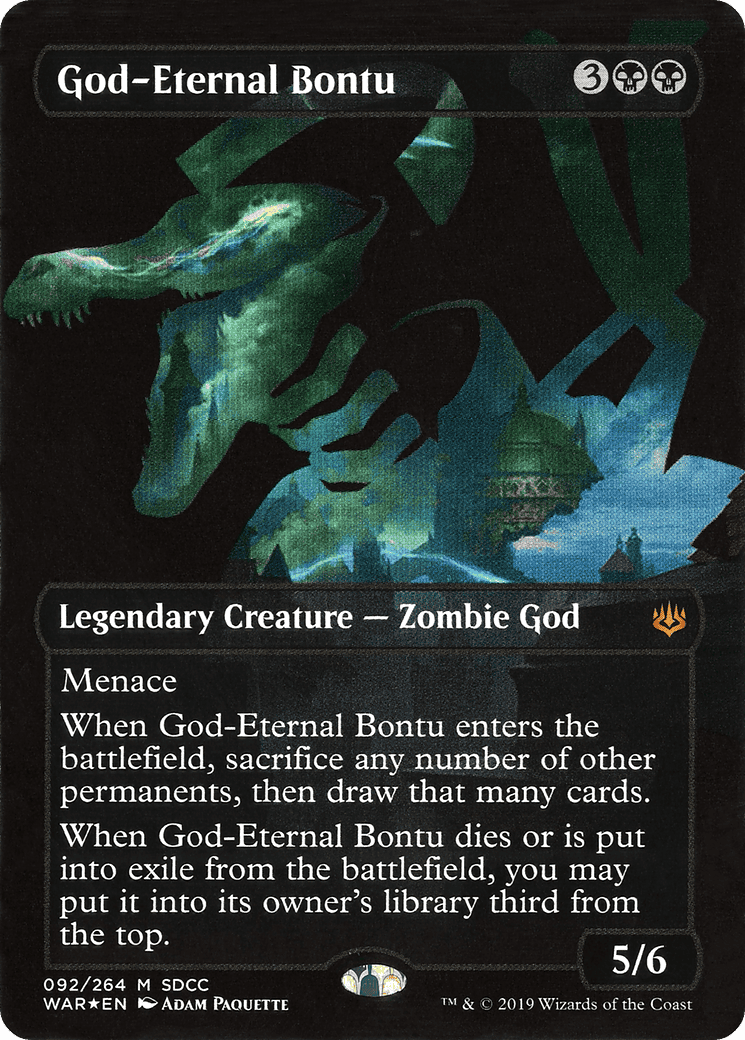 When God-Eternal Bontu enters, sacrifice any number of other permanents, then draw that many cards.