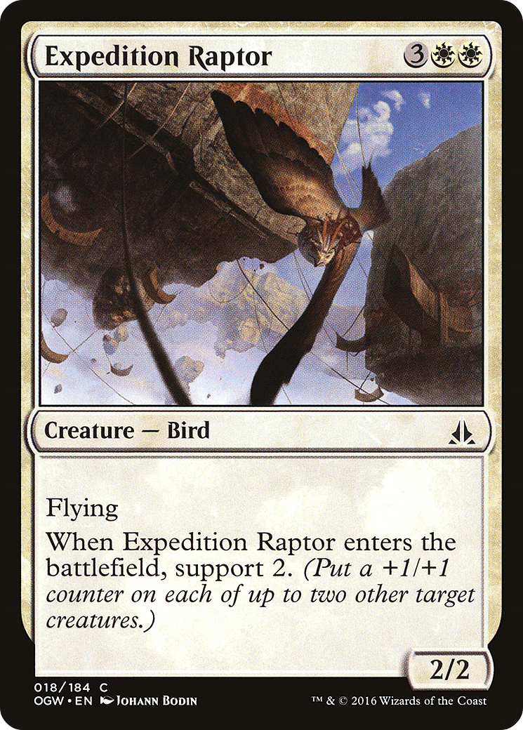 Flying When this creature enters, support 2. (Put a +1/+1 counter on each of up to two other target creatures.)