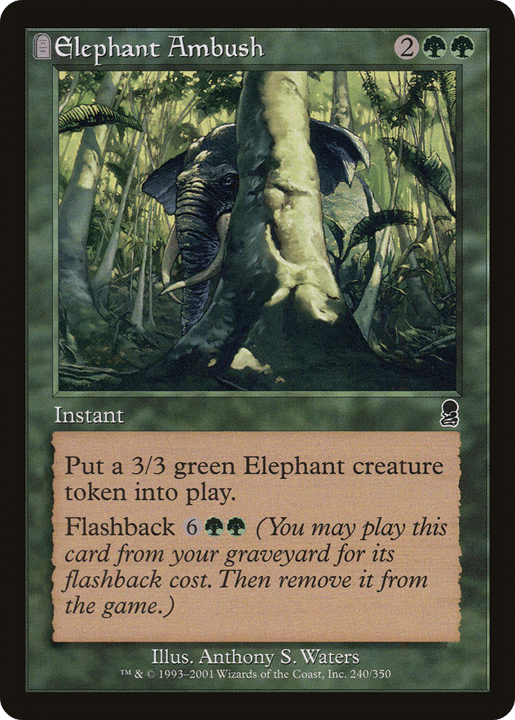 Create a 3/3 green Elephant creature token. Flashback {6}{G}{G} (You may cast this card from your graveyard for its flashback cost. Then exile it.)