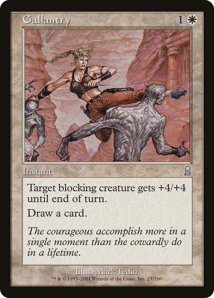Target blocking creature gets +4/+4 until end of turn. Draw a card.
