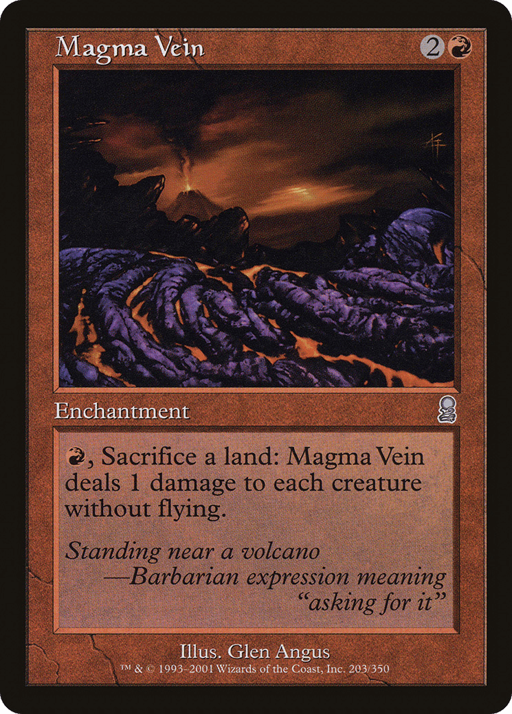 {R}, Sacrifice a land: This enchantment deals 1 damage to each creature without flying.