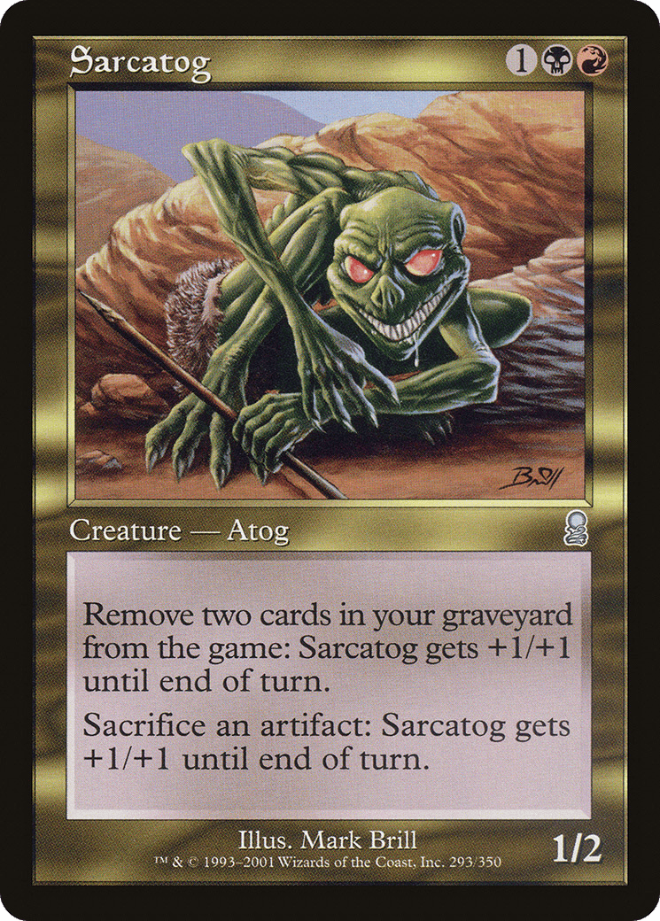 Exile two cards from your graveyard: This creature gets +1/+1 until end of turn. Sacrifice an artifact: This creature gets +1/+1 until end of turn.