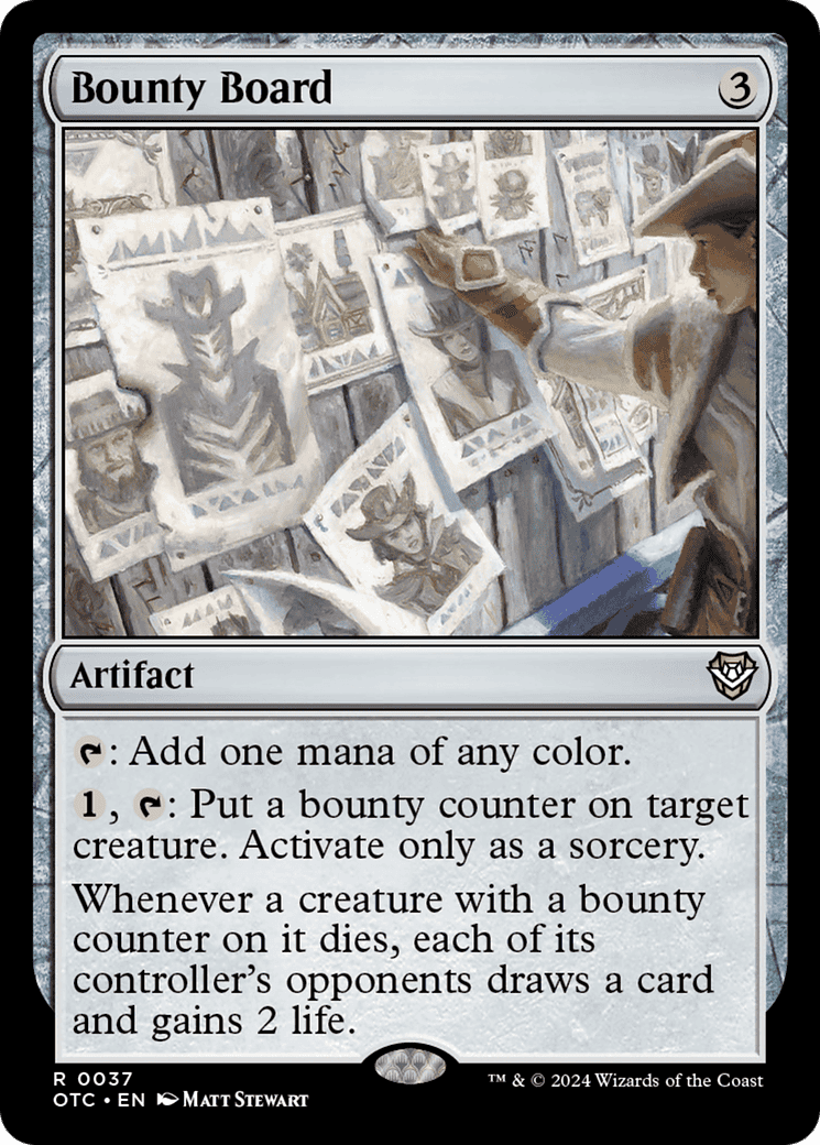 Whenever a creature with a bounty counter on it dies, each of its controller’s opponents draws a card and gains 2 life.