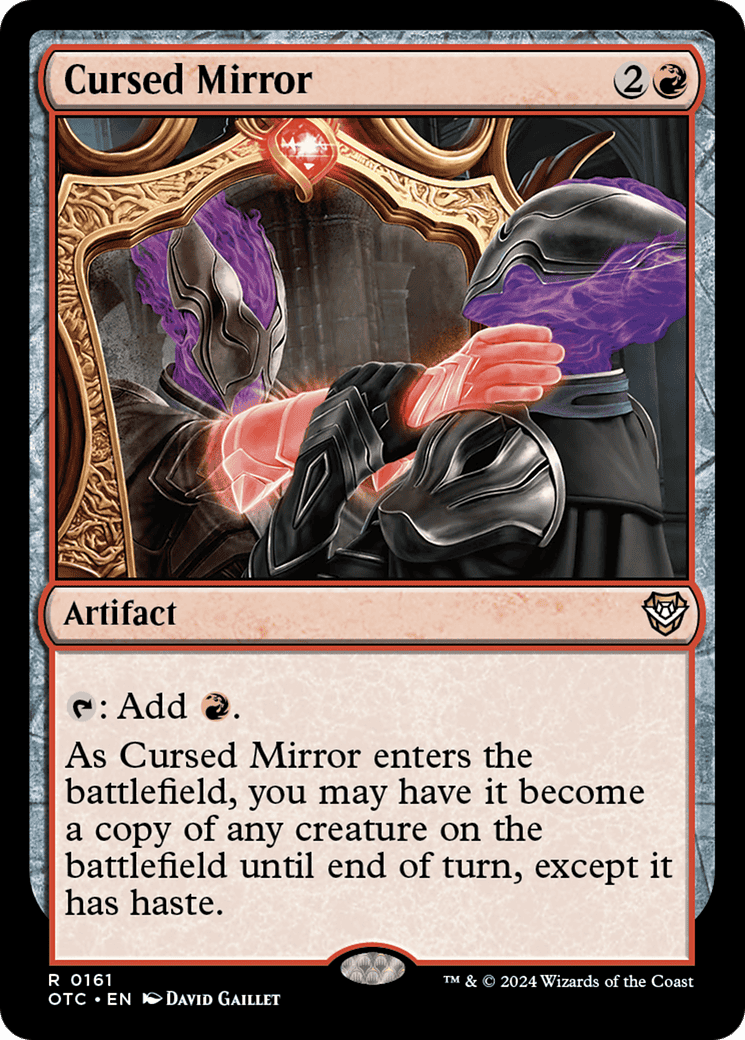 {T}: Add {R}. As this artifact enters, you may have it become a copy of any creature on the battlefield until end of turn, except it has haste.