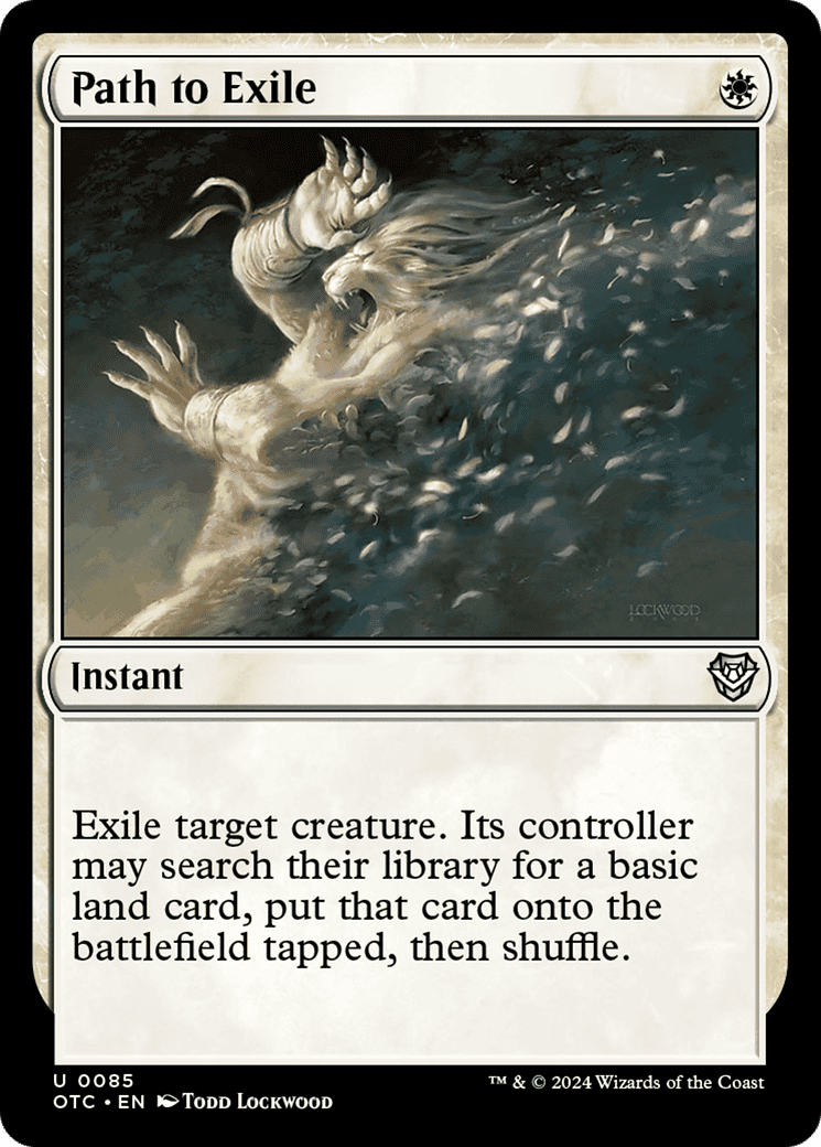 Exile target creature. Its controller may search their library for a basic land card, put that card onto the battlefield tapped, then shuffle.