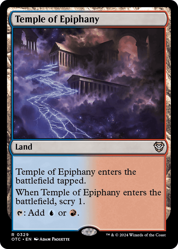 This land enters tapped. When this land enters, scry 1. (Look at the top card of your library. You may put that card on the bottom.) {T}: Add {U} or {R}.