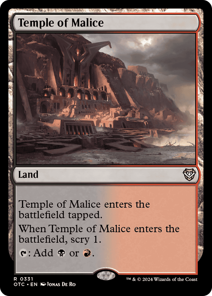This land enters tapped. When this land enters, scry 1. (Look at the top card of your library. You may put that card on the bottom.) {T}: Add {B} or {R}.
