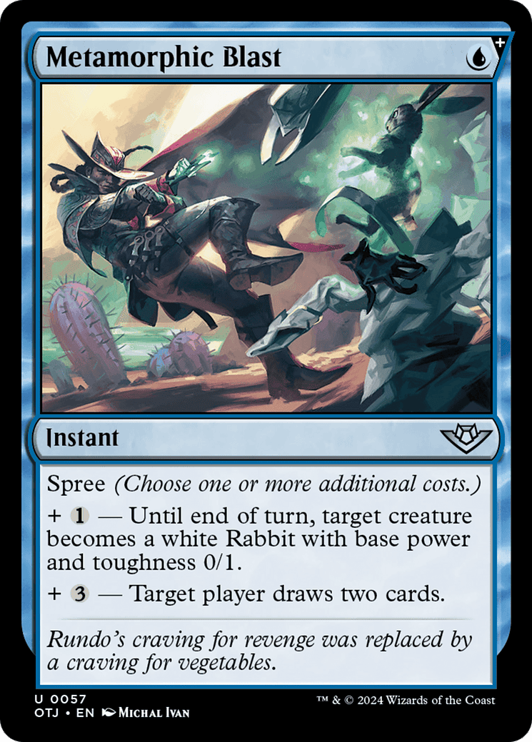 + {1} – Until end of turn, target creature becomes a white Rabbit with base power and toughness 0/1.
