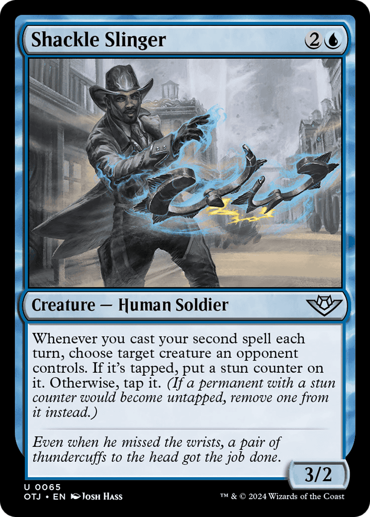 Whenever you cast your second spell each turn, choose target creature an opponent controls. If it’s tapped, put a stun counter on it. Otherwise, tap it. (If a permanent with a stun counter would become untapped, remove one from it instead.)
