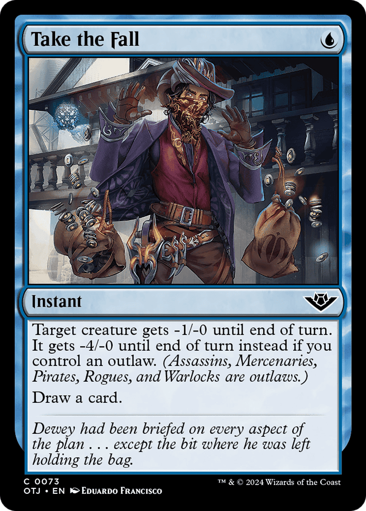 Target creature gets -1/-0 until end of turn. It gets -4/-0 until end of turn instead if you control an outlaw. (Assassins, Mercenaries, Pirates, Rogues, and Warlocks are outlaws.)