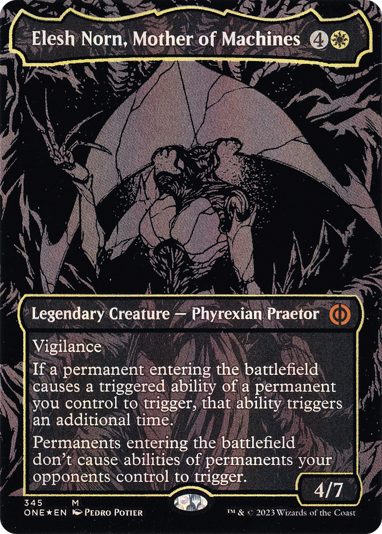 Elesh Norn, Mother of Machines (345) (Borderless) (ONE) – Oil Slick Raised Foil