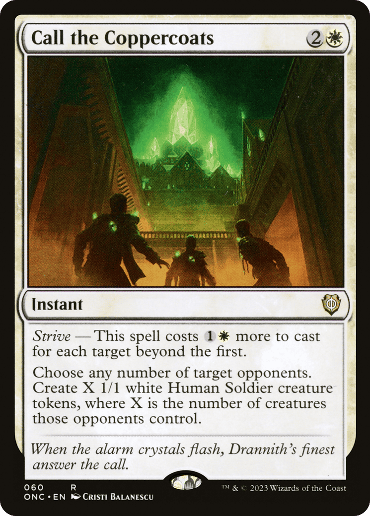 Choose any number of target opponents. Create X 1/1 white Human Soldier creature tokens, where X is the number of creatures those opponents control.