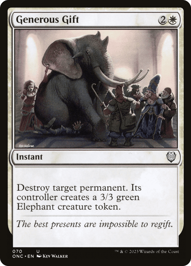 Destroy target permanent. Its controller creates a 3/3 green Elephant creature token.