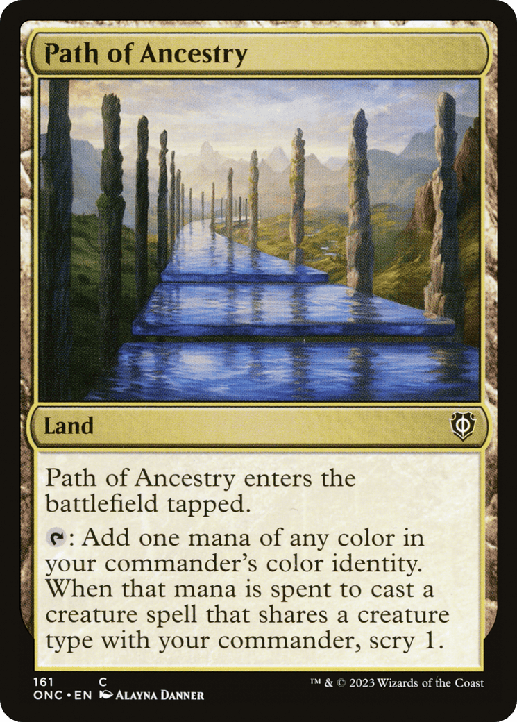 {T}: Add one mana of any color in your commander’s color identity. When that mana is spent to cast a creature spell that shares a creature type with your commander, scry 1. (Look at the top card of your library. You may put that c