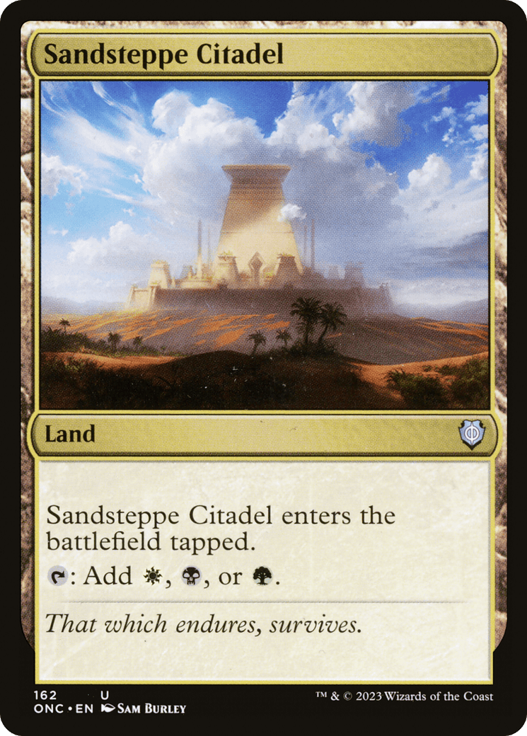 This land enters tapped. {T}: Add {W}, {B}, or {G}.