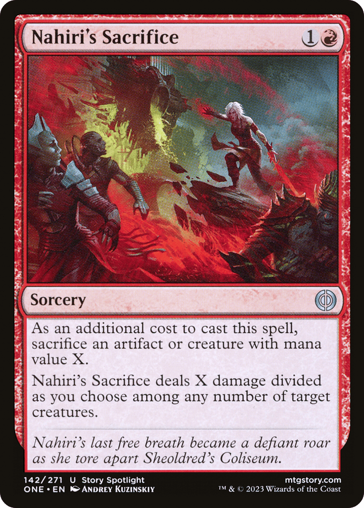 Nahiri’s Sacrifice deals X damage divided as you choose among any number of target creatures.