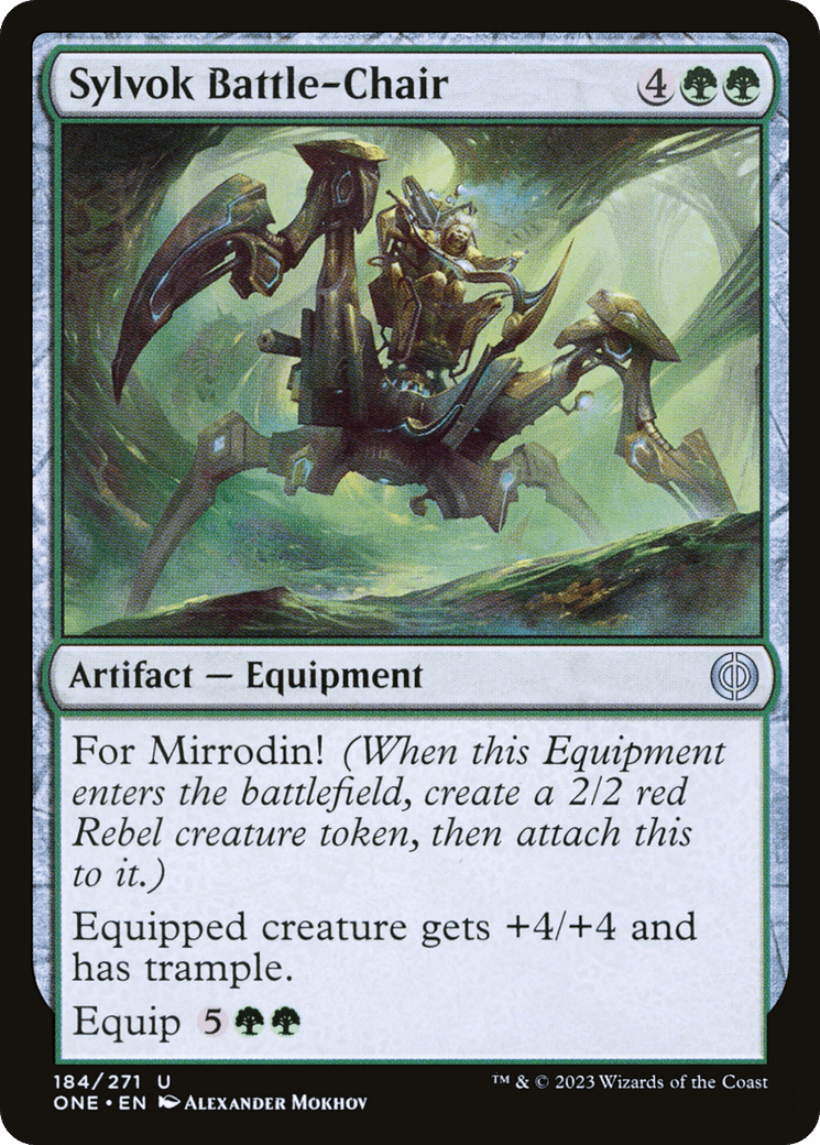 For Mirrodin! (When this Equipment enters, create a 2/2 red Rebel creature token, then attach this to it.)
