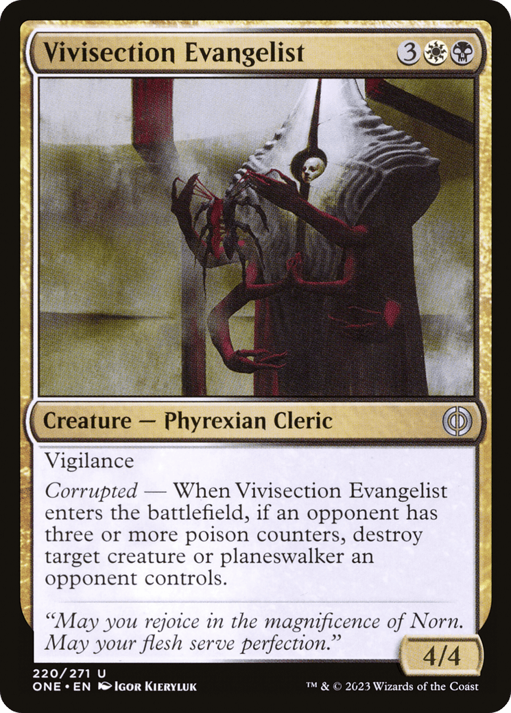 Corrupted – When this creature enters, if an opponent has three or more poison counters, destroy target creature or planeswalker an opponent controls.