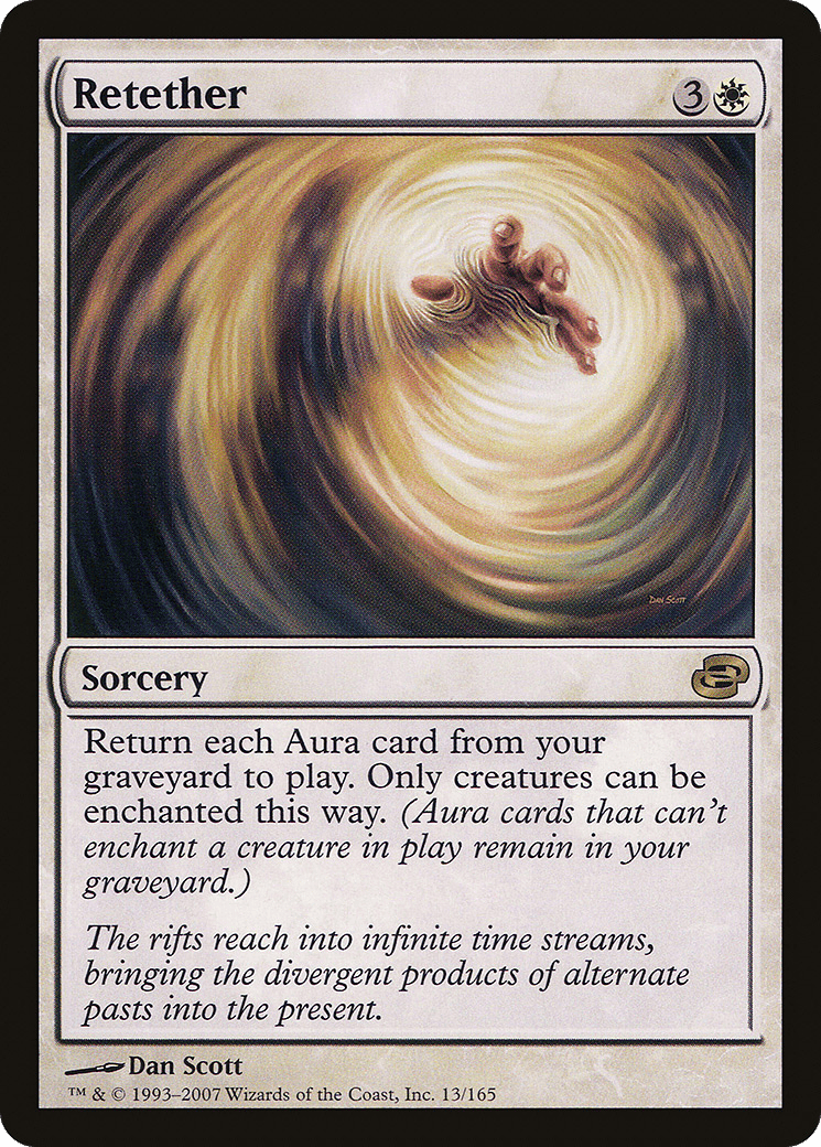 Return each Aura card from your graveyard to the battlefield. Only creatures can be enchanted this way. (Aura cards that can’t enchant a creature on the battlefield remain in your graveyard.)