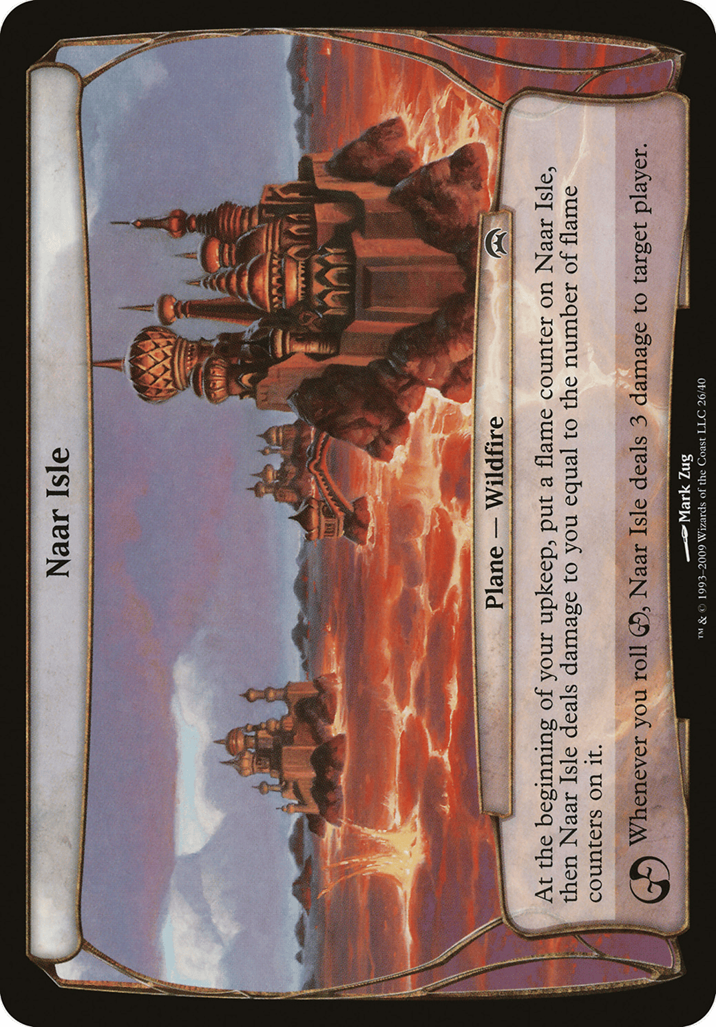 At the beginning of your upkeep, put a flame counter on Naar Isle, then Naar Isle deals damage to you equal to the number of flame counters on it.